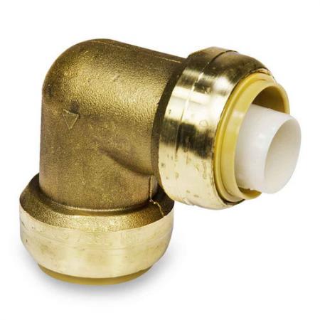 The SharkBite UR256 3/4 in. Brass 90-Degree Push-to-Connect Elbow is a versatile plumbing fitting from SharkBite, designed for quick and easy connections. It allows a 90-degree turn for 3/4 in. pipes including copper, CPVC, and PEX types.
