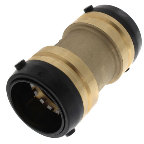 The CASH ACME UXL0141 SharkBite coupling offers an easy solution for connecting pipes. This large diameter coupling fits pipes with a nominal size of one and a half inches. It uses a push-to-connect design, which means it can be installed without special tools or soldering.