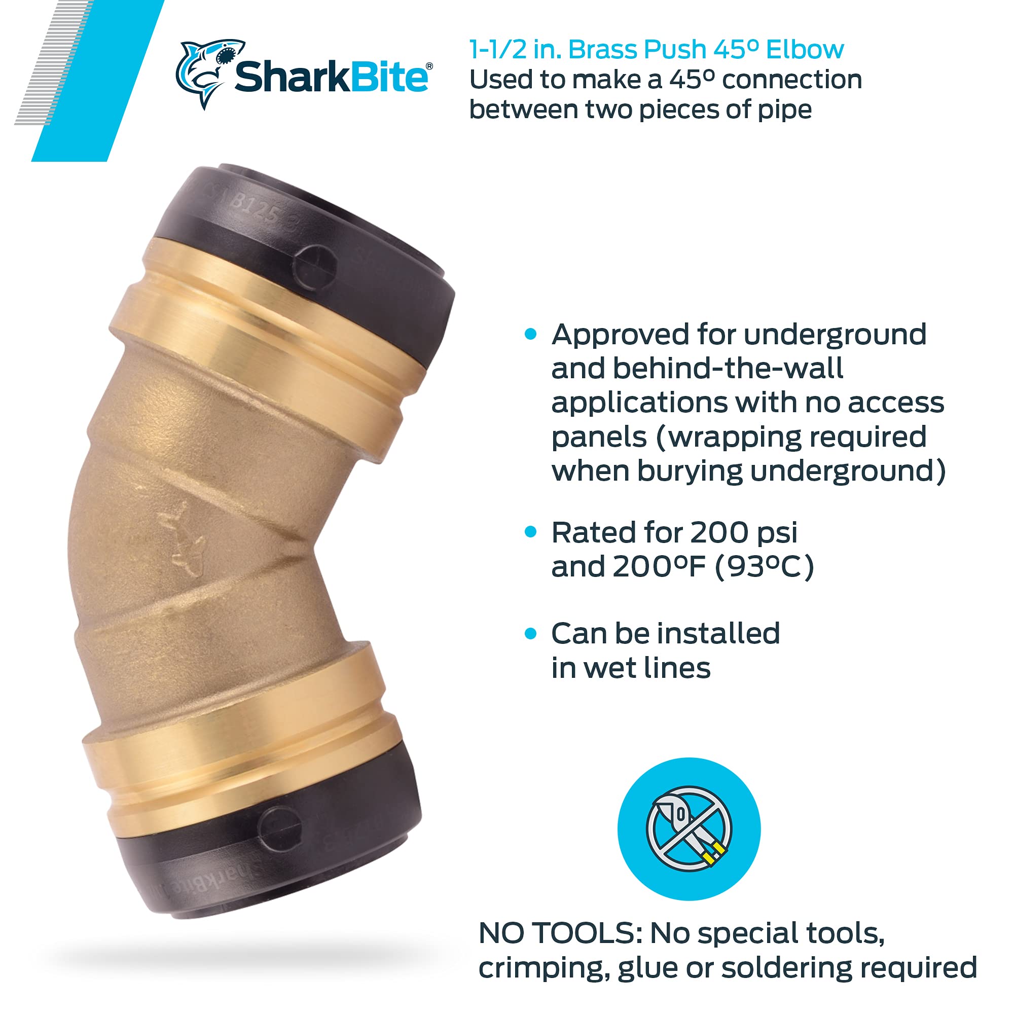 The SharkBite UXL0541 is a push-to-connect elbow fitting designed for connecting pipe in plumbing systems. This brass fitting allows for quick installation without the need for tools, soldering, or glue. The unique push-to-connect technology ensures a reliable and leak-free connection every time.