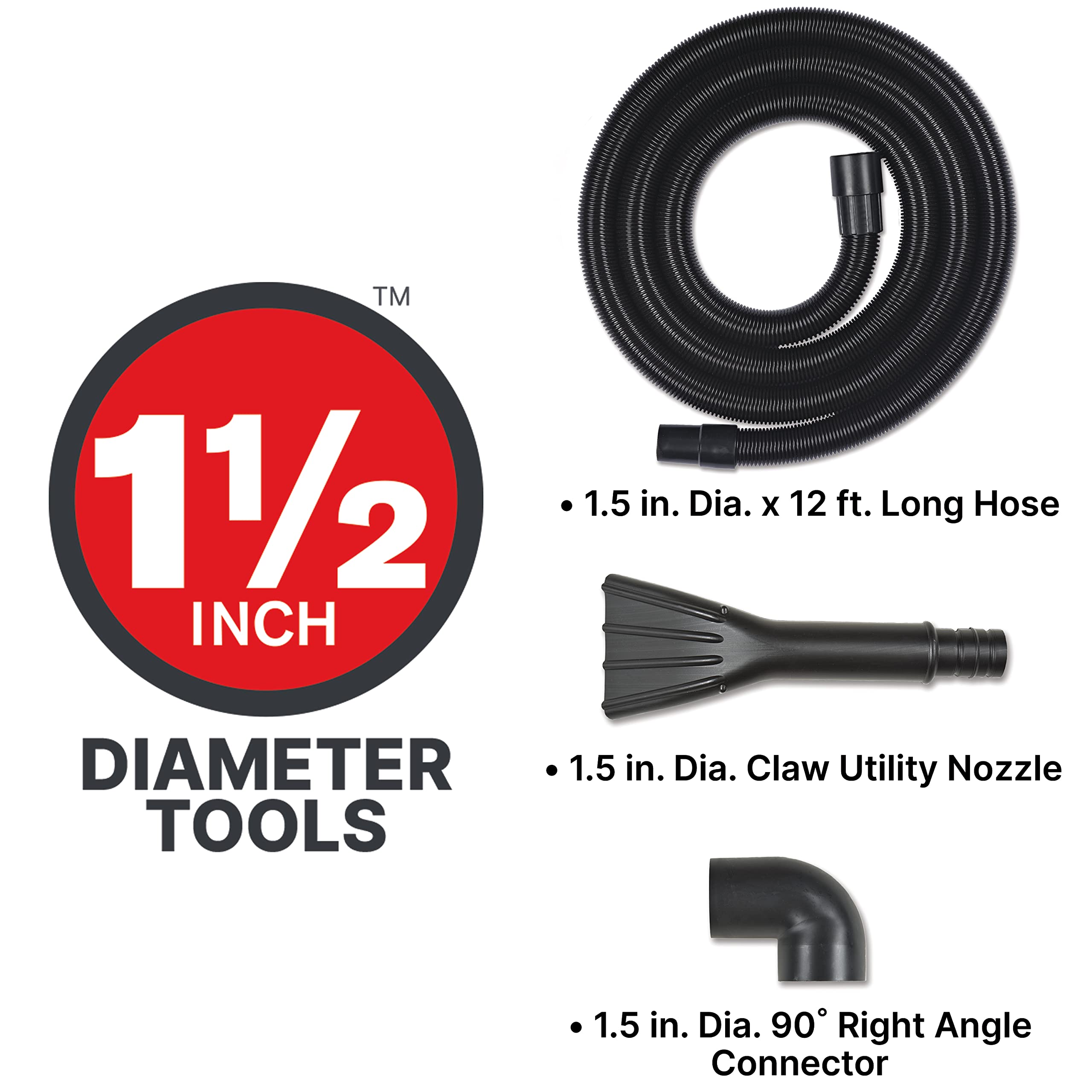 The Shop-Vac 9700606 Two-Stage Wet Dry Motor Head Assembly is a powerful solution for industrial cleaning tasks. Designed to fit standard 55-gallon drums, this assembly comes with a 3.0 peak horsepower motor. This kit enables efficient cleanup of both wet and dry messes, making it ideal for workshops and job sites. It includes a 35-foot power cord, a 1.5-inch diameter, 12-foot crush-resistant hose, a claw utility nozzle, and a right-angle connector.