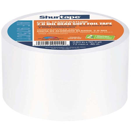 The Shurtape 232035 AF 975CT HVAC Contractor-Grade Foil Tape is designed for rigorous use in various HVAC applications. It features a cold temperature acrylic adhesive and a dead-soft aluminum foil backing, ensuring reliable performance.