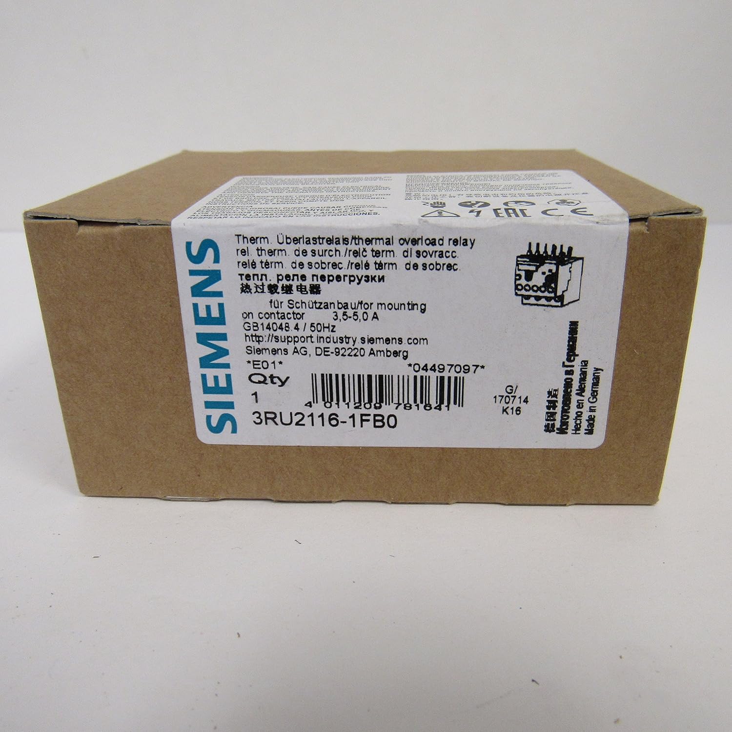 Engineered for reliability, the Siemens 3RU2116-1FB0 Overload Relay offers efficient motor protection. Ideal for industrial settings, this model prevents motors from overheating by using thermal mechanisms for trip delay and phase failure detection.