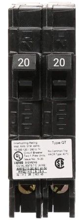 Siemens Q2020NC Two 20-Amp Single Pole 120-Volt Non-Current Limiting Circuit Breaker