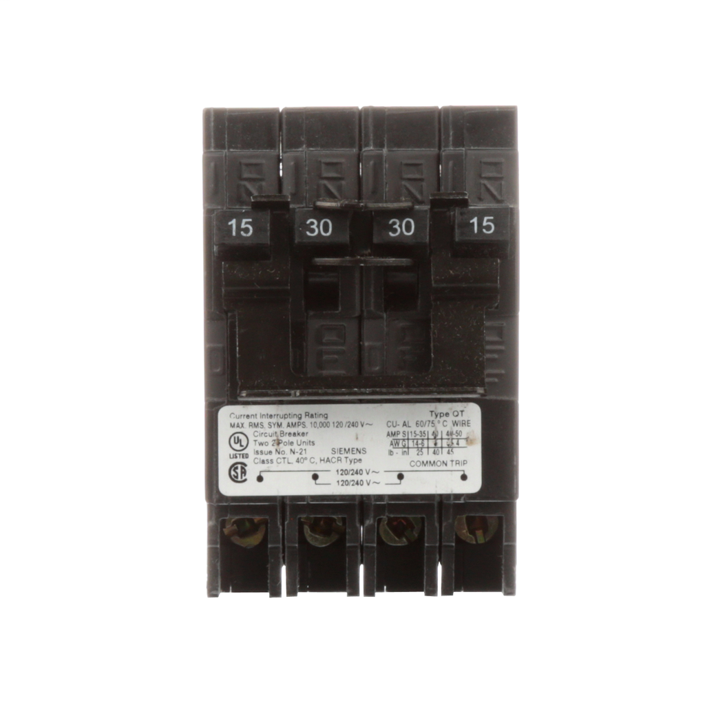 The Siemens Q21530CT2 is a quadplex circuit breaker designed for electrical distribution. With a voltage rating of 120/240V, it provides reliable protection for load center mains and feeders. This breaker features two poles and a thermal magnetic trip, making it suitable for various applications.