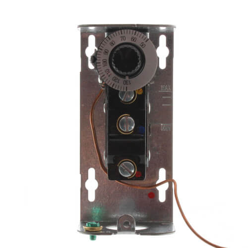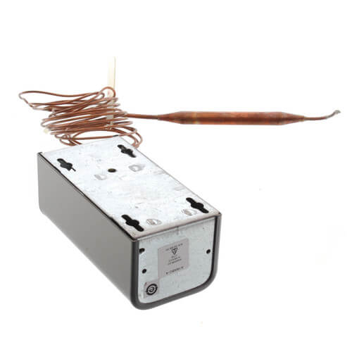 This control operates with a remote sensing element and includes an eight-foot capillary line, making installation straightforward. It is designed for HVAC applications and offers precise temperature control.