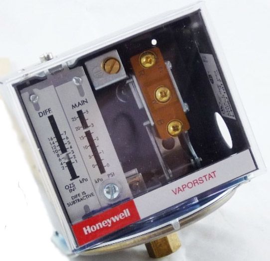 The Honeywell L408J1017 Vaporstat Controller provides efficient control for vapor heating systems with a pressure range of zero to four PSI. Designed for reliability, this controller includes a snap action switch that offers precision in temperature regulation while maintaining safety standards. It is suitable for use in commercial and industrial applications.