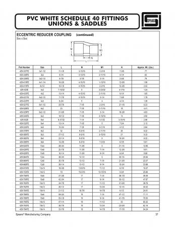 Spears 429-422FE is a 4 x 3 inch PVC reducing coupling designed for use in plumbing applications. This coupling features a socket end style and is manufactured for use with Schedule 40 piping systems. The product has a length of eight and five-eighths inches and a diameter of four and fifteen-sixteenths inches. It is made from high-quality PVC, ensuring durability and long-lasting performance.
