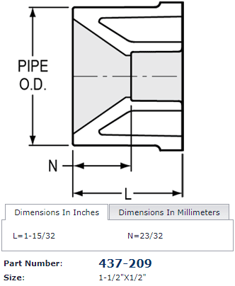 Connection Size: 1-1/2 x 1/2 inches
