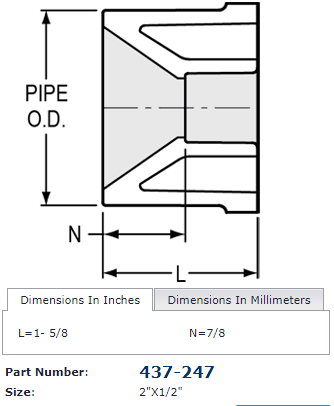 This Spears reducing bushing is part of the Schedule 40 PVC fittings lineup. It offers lower installation costs and higher flow capacity. Designed for use primarily in plumbing applications, it suits industrial and scientific needs.