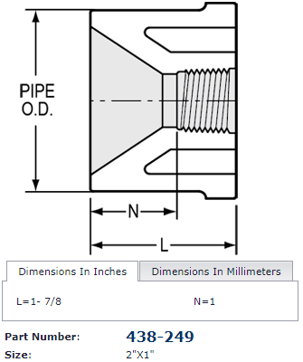 - 2-inch spigot to 1-inch NPT female