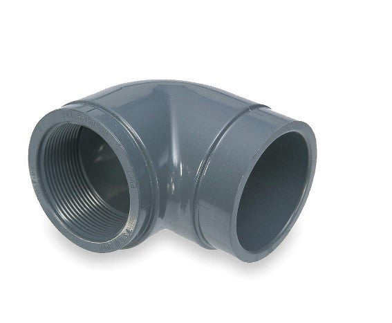 The Spears 807-0125/50 is a PVC elbow fitting designed for pipe systems requiring a 90-degree angle. This fitting connects female NPT and socket connections efficiently. It is suitable for one and one-fourth inch pipe size, making it ideal for various plumbing tasks.