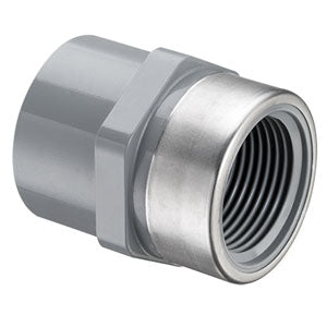 The Spears Manufacturing 835-010CSR is a CPVC female adapter fitting for socket to special reinforced FNPT connections. This fitting is designed for use in plumbing, suitable for potable water applications. The product features a standard nominal size of one inch, and is made from high-quality CPVC material.