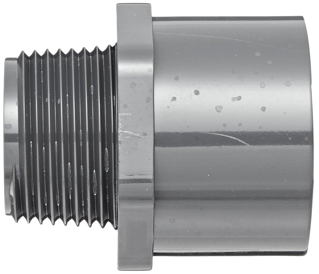 The Spears 836-020 is a PVC pipe fitting designed as a male adapter for schedule 80 pipes. It features a socket connection on one end and a male NPT connection on the other. This fitting is suitable for connecting pipes or fittings with different connection types.