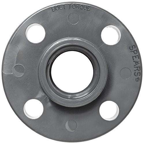 The Spears 852-040 is a one-piece flange fitting made of gray PVC, suitable for joining pipes in various piping systems. This fitting features female NPT threads for secure connections with male NPT pipes. It is designed to provide reliable performance in chemical processing and water distribution applications.