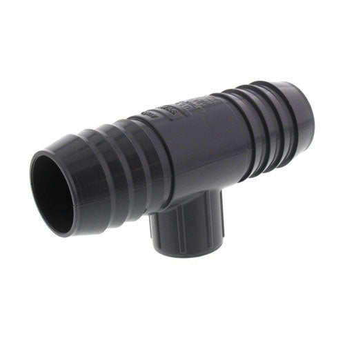 Spears Manufacturing offers the 1402-20910/50, a PVC Insert Tee fitting designed for plumbing applications. This product features a connection size of one and one-half inches by one-half inch for versatile pipe systems. The design is suitable for use with ASTM D 2104 Schedule 40 and D 2239 SIDR pressure rated polyethylene pipe.