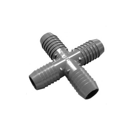 The SPEARS MANUFACTURING 1420-00510/250 is a 1/2 inch PVC insert cross designed for reliable connections in low-pressure applications. This fitting is well-suited for use with poly tubing, providing a strong retention without the need for clamps when paired with compatible tubing.
