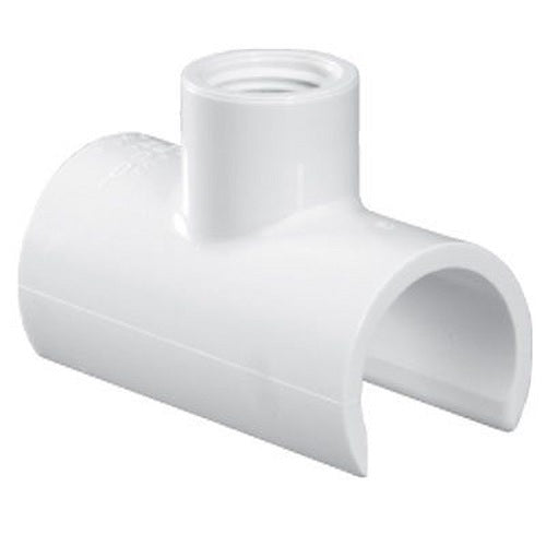 The SPEARS MANUFACTURING 464-0101/45 is a snap saddle tee designed for use with rigid PVC pipe. It provides a quick and effective method for adding a T to existing pipe systems. Simply glue the pipe and fitting together, snap it onto the pipe, and drill through the center socket to install your new pipe.