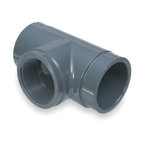 The SPEARS MANUFACTURING 802-020 is a two-inch PVC tee fitting designed for use in various plumbing applications. This Schedule 80 fitting is made from high-quality PVC material. It has socket ends and a female National Pipe Taper (FNPT) connection. The fitting is suitable for connecting pipes in a T-junction, allowing for efficient flow diversion in water supply systems.