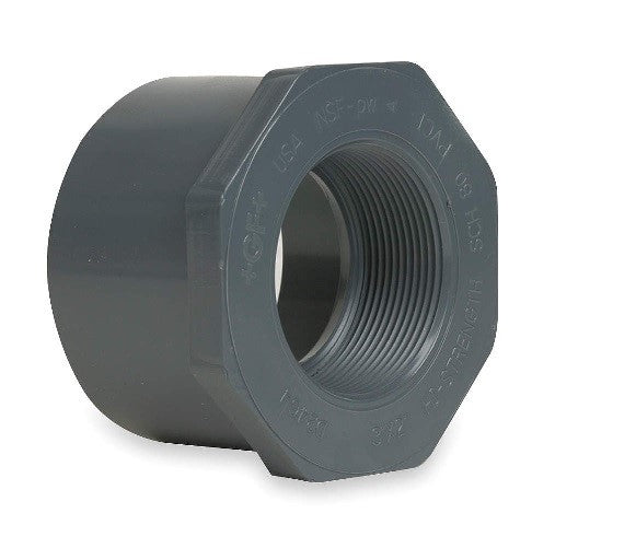 The SPEARS MANUFACTURING 838-16610/100 is a polyvinylchloride (PVC) reducer bushing designed to connect pipes of different sizes. This product features a spigot size of one and one-fourth inches and a half-inch female thread NPS connection. Ideal for various plumbing applications, this Schedule 80 molded bushing is durable and reliable for fluid transport.