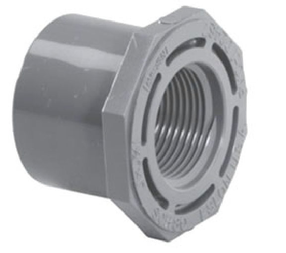 The SPEARS MANUFACTURING 838-3375/25 is a PVC reducing bushing designed for pipe fittings. This product connects three inch pipe to one and a half inch pipe. It is suited for low pressure applications and is commonly used in irrigation and other outdoor cold water systems.