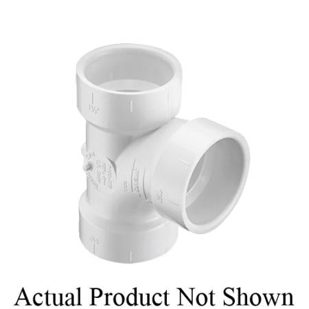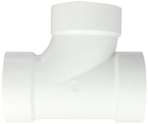 This Spears sanitary tee is T-shaped and designed to connect three pipes, ensuring smooth flow and preventing clogging. It is ideal for non-pressure residential drain, waste, and vent systems. The PVC structure allows it to resist chemicals and operate efficiently within a temperature range of 73 to 140 degrees Fahrenheit.