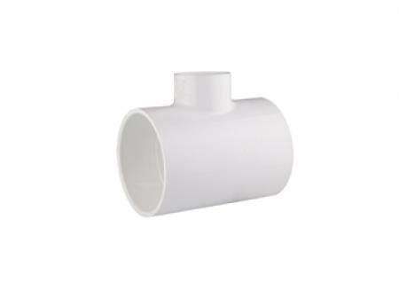 The Spears P401-422 is a PVC DWV reducing sanitary tee fitting, designed for drain, waste, and vent applications. This fitting connects 4 inch and 3 inch pipes smoothly.