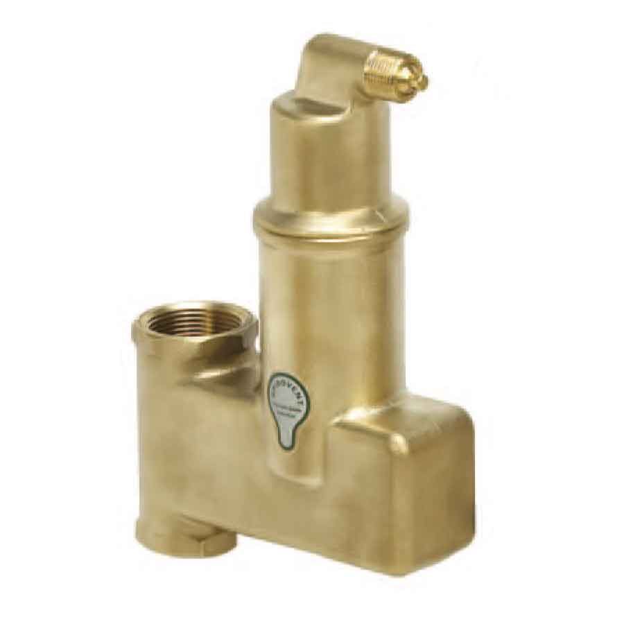 The Spirovent is equipped with a patented Spirotube that slows water flow, allowing air bubbles to collect and be vented automatically.