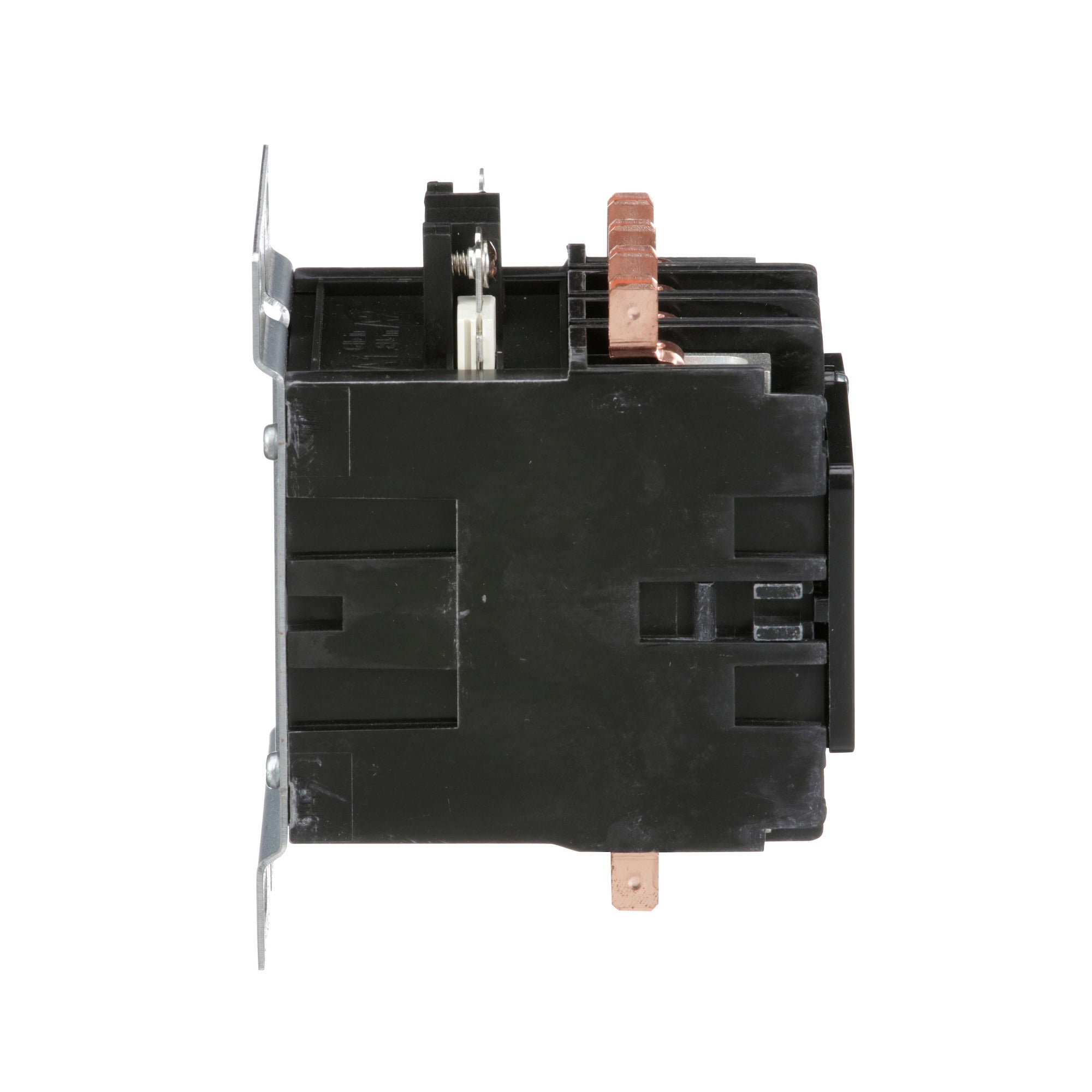 This contactor features straight-through wiring to simplify installation and maintenance. It is compact in size, measuring three point seventy-eight inches by two point seventy-five inches by three point zero four inches.
