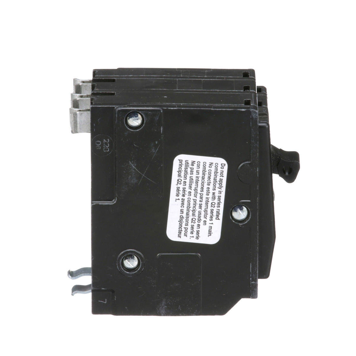 The QO330 breaker uses a trip-free toggle mechanism for quick action and visual trip indication. Its compact design ensures efficient panel space usage.
