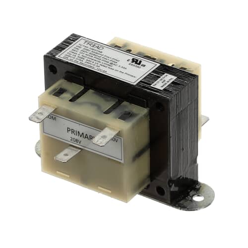 The Star Transformer 2E-Z15018 converts voltage from two hundred eight or two hundred forty volts to twelve volts. It is designed for commercial appliances with a power rating of forty volt-amperes at fifty or sixty hertz. This transformer is essential for powering equipment that requires low voltage for safe operation.