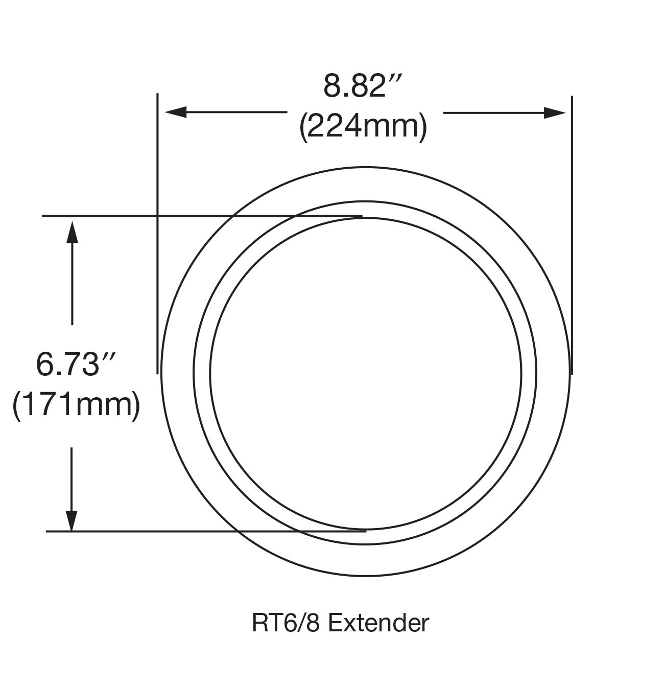 The Sylvania RT6/8/TRIMEXT/75082 is a trim ring extender designed for eight inch can applications. It simplifies installation and improves the aesthetic of recessed lighting by providing a clean, finished look.