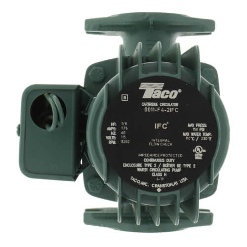 Taco 0011-F4-2 IFC Circulator Pump is suitable for hydronic systems needing efficient water circulation. It features a cast iron construction and provides a flow rate of up to thirty gallons per minute. This pump is designed for applications including radiant floor heating and domestic hot water recirculation.