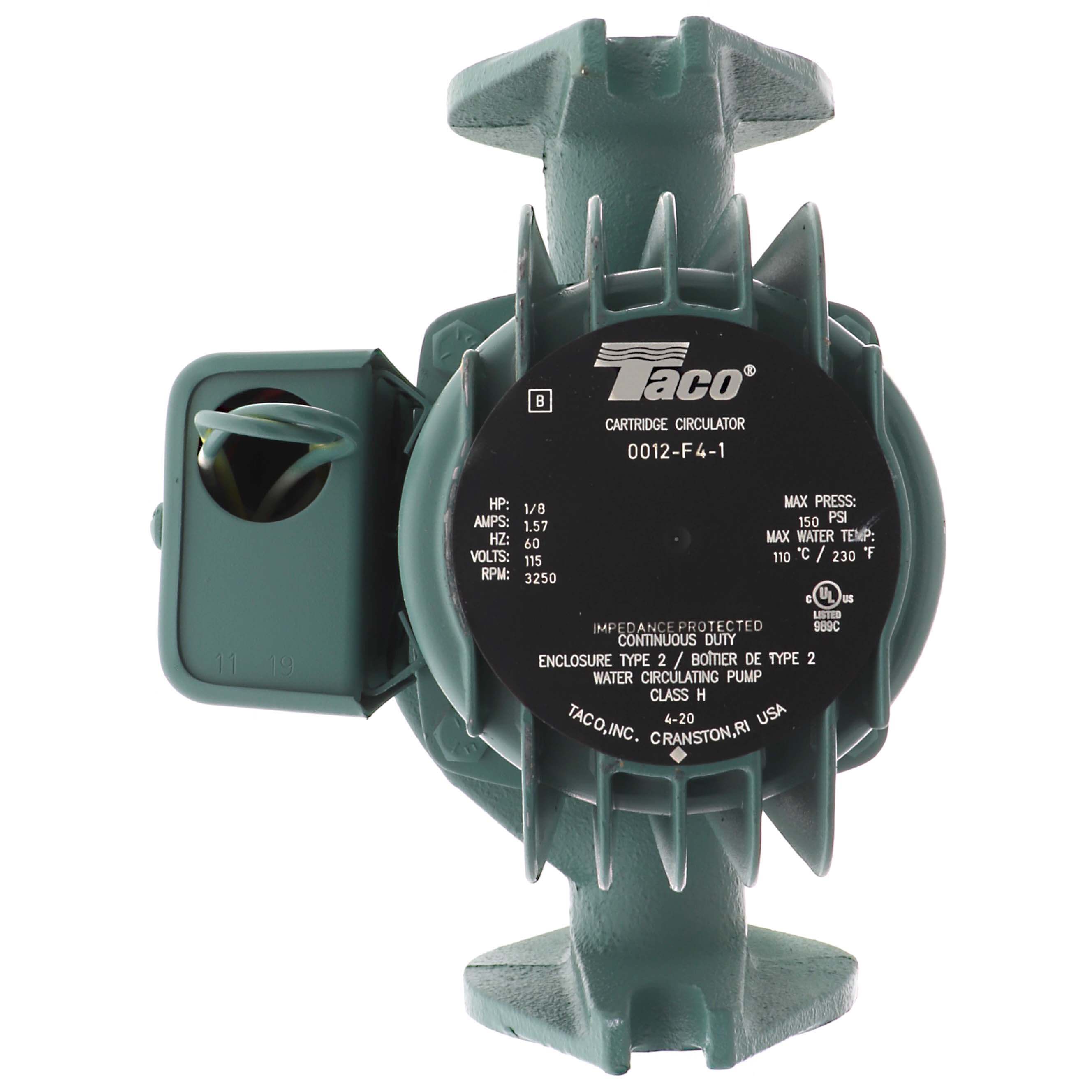 The Taco 0012-F4-1 is a reliable cast iron circulator pump designed for heating and cooling closed loop systems. Its unique replaceable cartridge allows for easy servicing and maintenance. This model operates at 1/8 horsepower and is suitable for high-flow, medium-head applications.