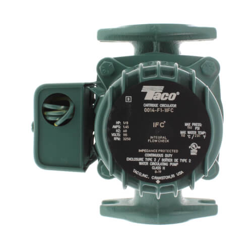 The Taco 0014-F1-1IFC is a cast iron circulator pump designed for reliable fluid circulation in heating and cooling systems. It consists of an integral flow check feature which enhances efficiency by eliminating separate inline flow check valves. This compact circulator is built for commercial and industrial applications.