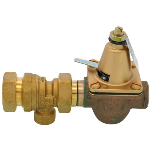 The Taco 3492-050-BT1 is a 1/2 inch brass combination boiler feed valve and backflow preventer. This valve automatically feeds water into a system whenever the pressure drops below a set threshold. It is critical for maintaining system pressure and avoiding potential damage.