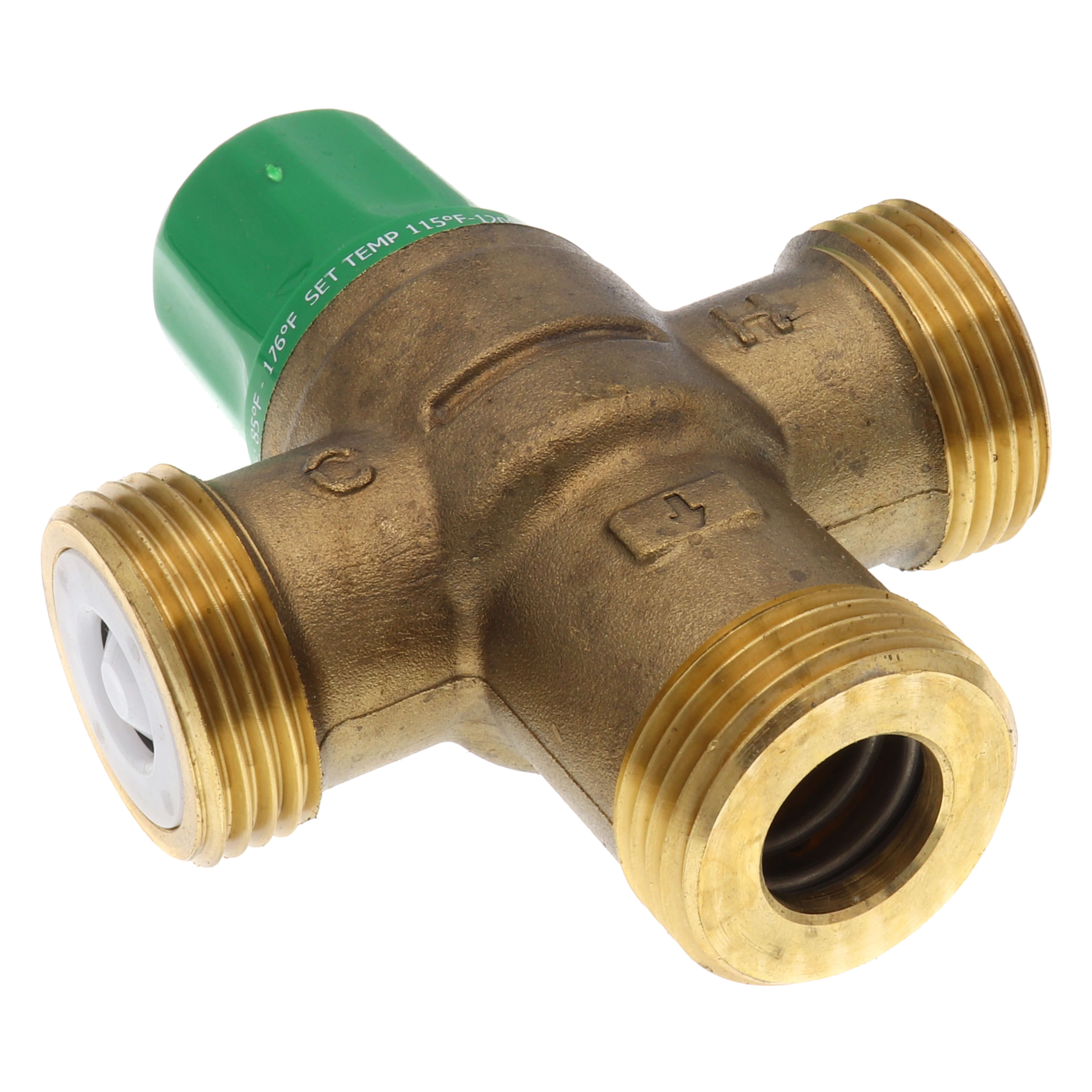 Taco's 5003-T3 is a 3/4 NPT Union 85/176F MixValve designed for temperature control in commercial and industrial settings. This valve is made from forged brass for durability and corrosion resistance. It operates efficiently within a temperature range of eighty-five to one hundred seventy-six degrees Fahrenheit. Easy installation is facilitated by the union design.