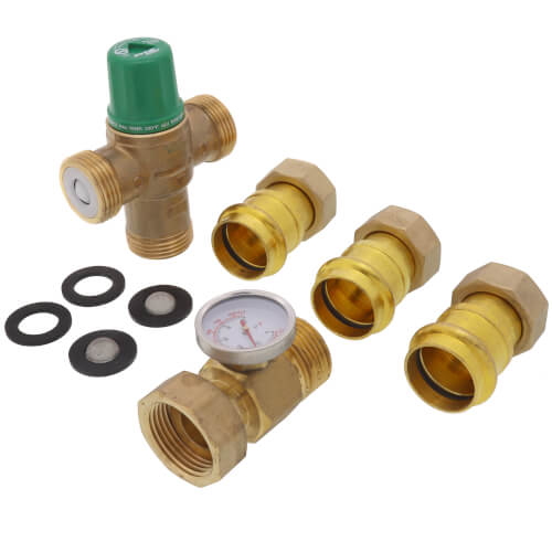 The Taco 5004-H3-G is a pressure valve designed for effective mixing applications. This mixing valve features a one-inch size and comes with a gauge. It is made for hot water systems and complies with NSF 61 and ASSE 1017 standards. The valve performs well in domestic hot water systems, ensuring the delivery of safe water temperatures.