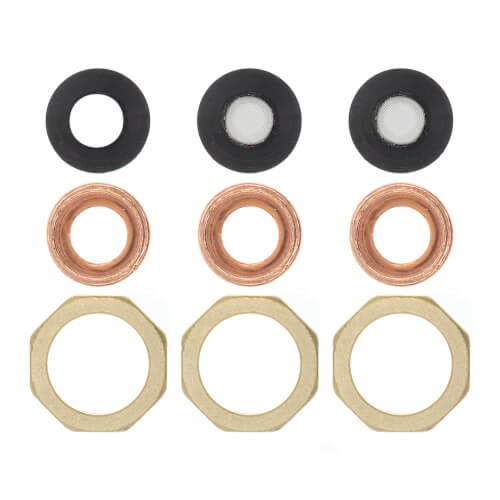 The Taco 5123-003KIT is a set of three 3/4 Sweat Unions designed for use with the Taco 5120 Water Temperature Mixing Valve. This product is suitable for plumbing applications requiring reliable connections. Each unit includes a gauge for accurate temperature readings.