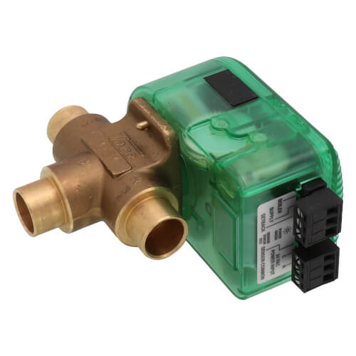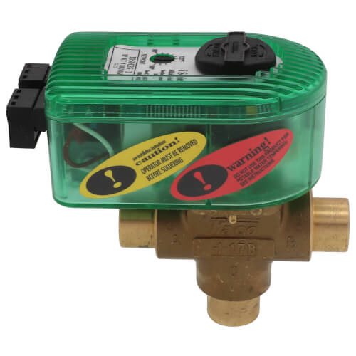 The Taco I050C3S-1 is a 1/2 inch, 3-way setpoint mixing valve with a sensor designed for heating systems. This mixing valve provides precise control of supply water temperature, ensuring optimal performance in heating applications. The actuator uses a microprocessor for effective modulation of the valve, allowing for adjustable temperature settings from eighty degrees Fahrenheit to one hundred eighty degrees Fahrenheit. Key features include: