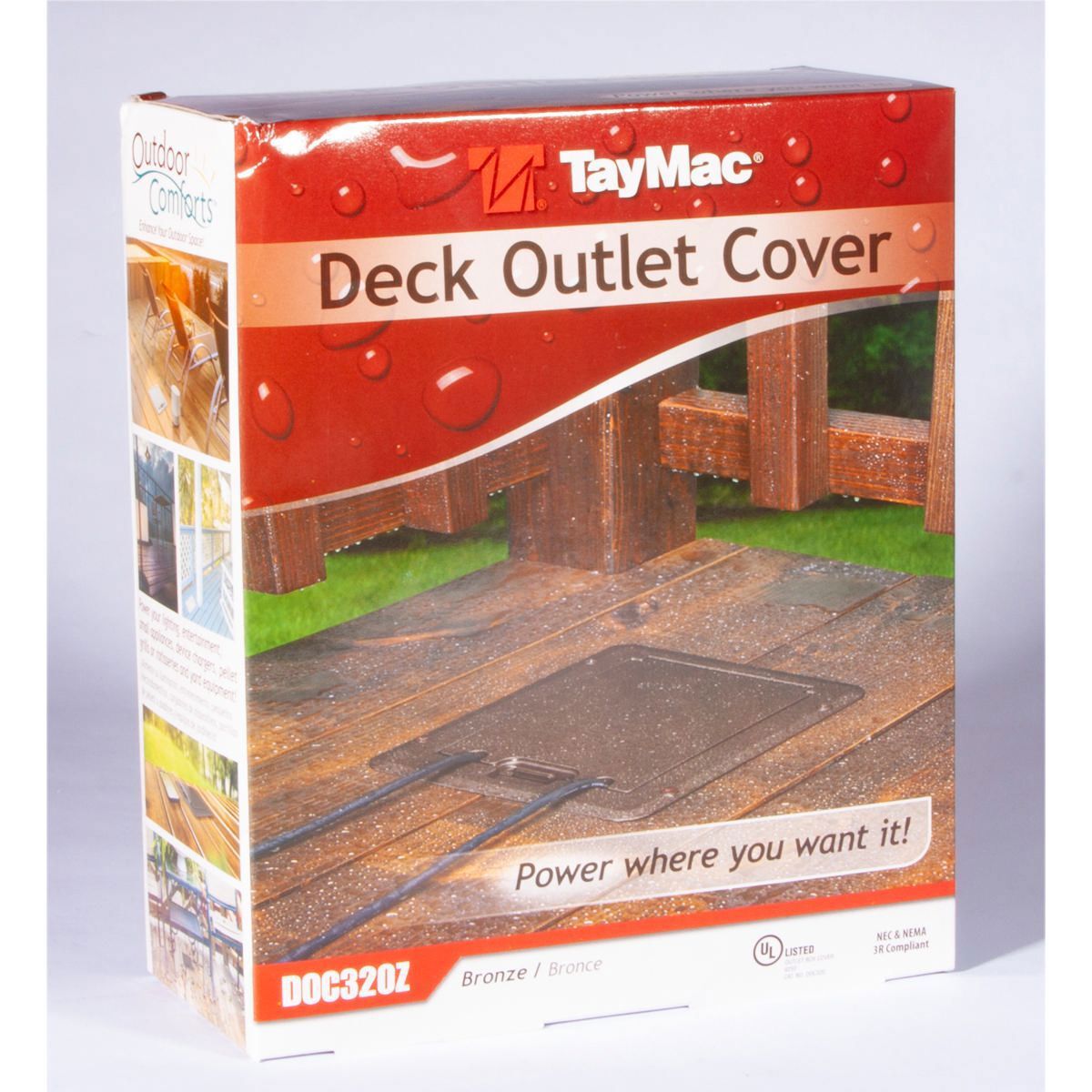 The TayMac DOC320Z is a weatherproof deck outlet cover designed for outdoor use. This durable cover is made from heavy-duty polycarbonate, providing long-lasting protection against harsh environmental conditions. The low-profile design allows for convenient power access on raised wood or composite decks.
