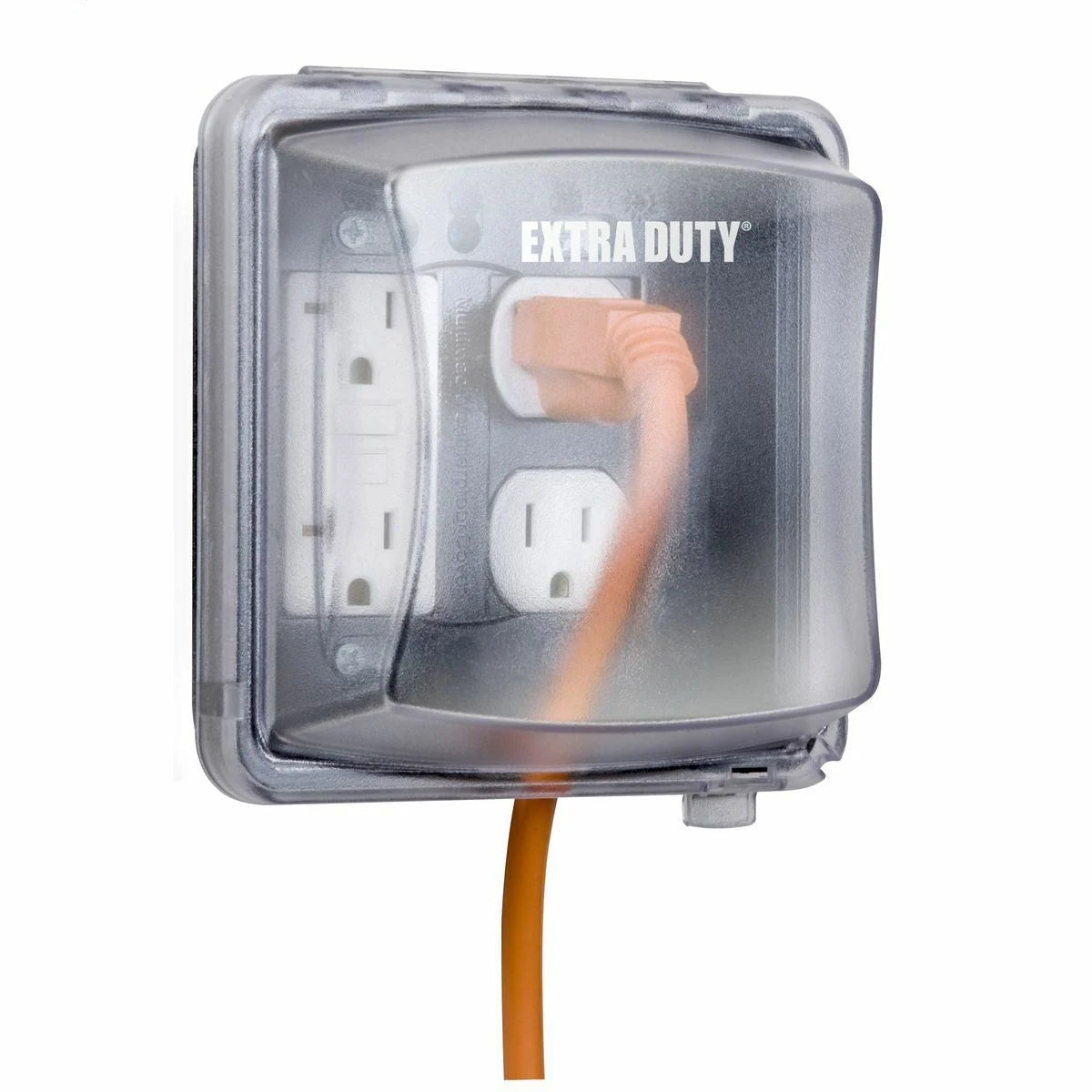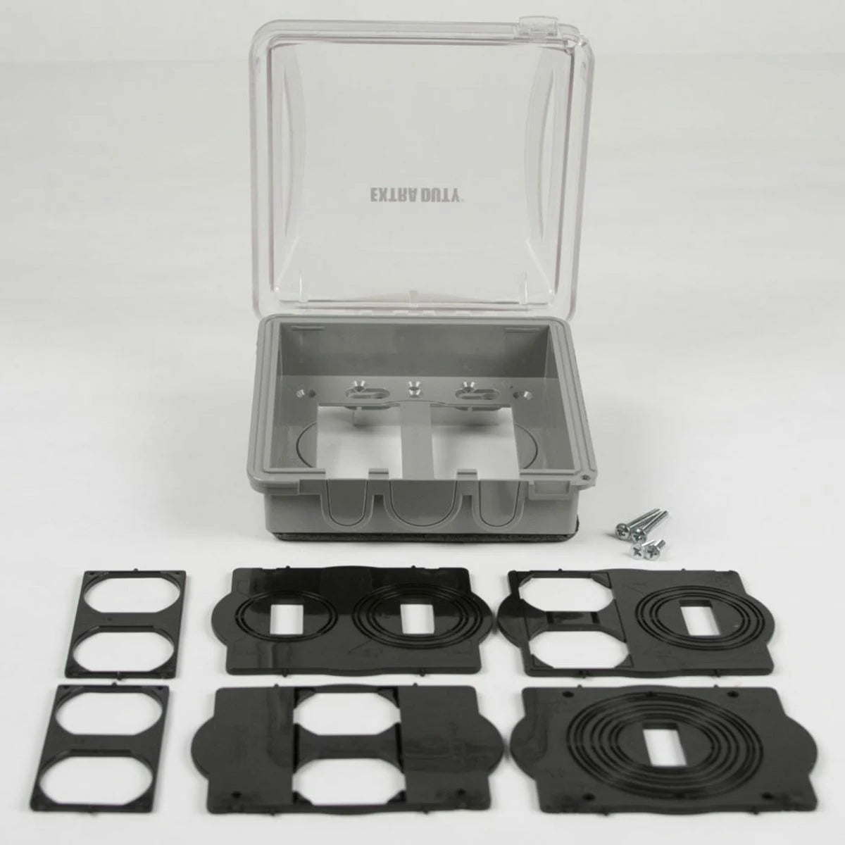 The TAYMAC MM2420C is a 2-gang weatherproof in-use cover designed for extra duty use. This cover is built to provide robust protection for electrical outlets while in use. Ideal for outdoor applications, the cover allows access to power outlets in wet conditions without compromising safety.