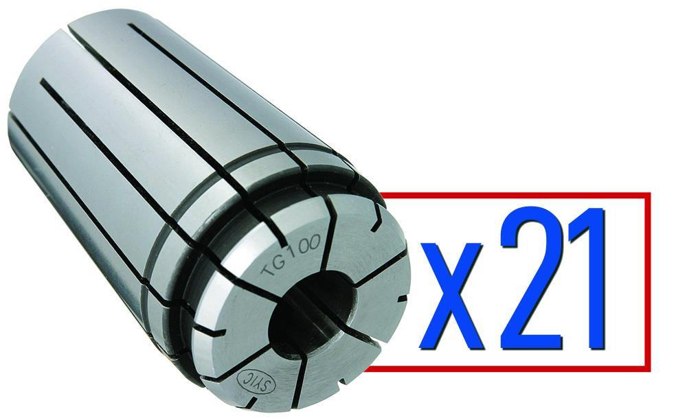 The Techniks 04010-21S is a TECH TG100 collet set. This set features twenty-one pieces with a size range of three eighths to one inch by one thirty-second.