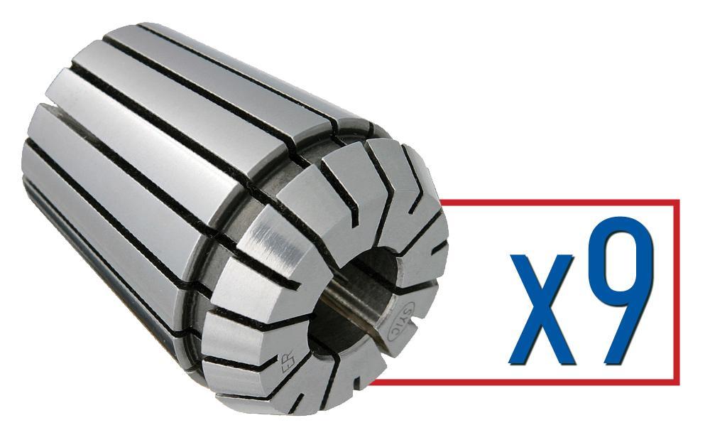 This collet set is perfect for use with PowerCOAT nuts and compatible with ER, DR, RD, ESX, AR, and BR series collet chucks.
