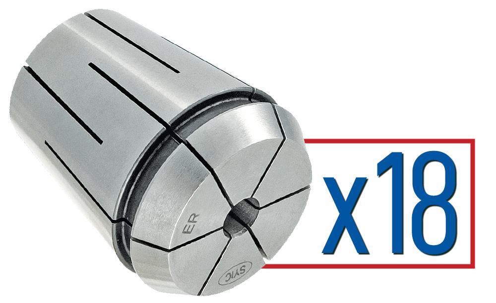 The Techniks 04546MS is a precision engineered collet set, featuring eighteen pieces made for specific use with ER32 chucks. This set includes sealed coolant collets, facilitating high-pressure coolant applications up to two thousand psi. The clamping range is three to twenty millimeters, making it ideal for a variety of setups.