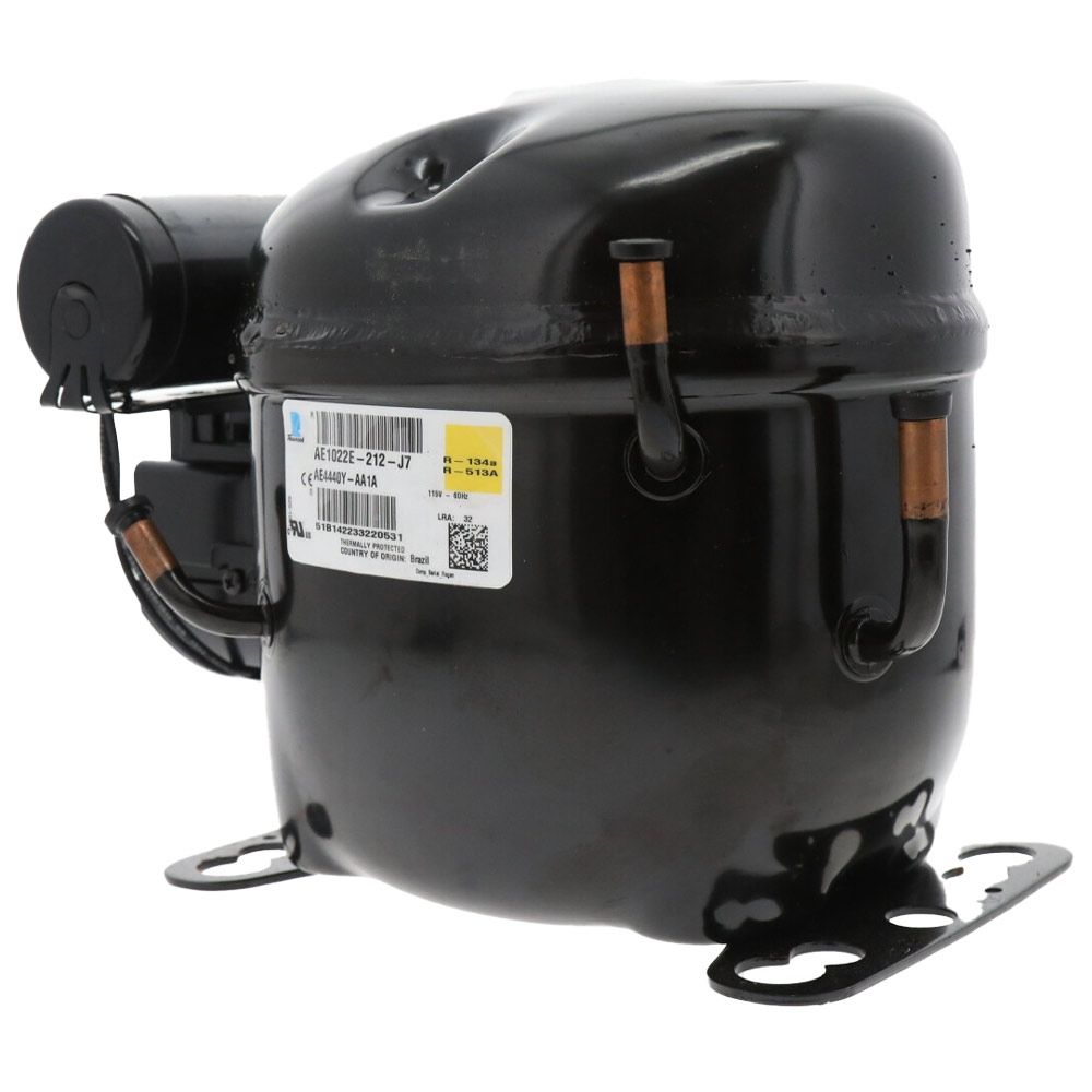 The Tecumseh AE1022E-212-J7 is a reciprocating compressor designed for refrigeration applications. This compressor operates with a nominal capacity of 4350 BTU/hr and uses R-134A refrigerant. It runs on 115 volts and is suitable for high and commercial back pressure applications.