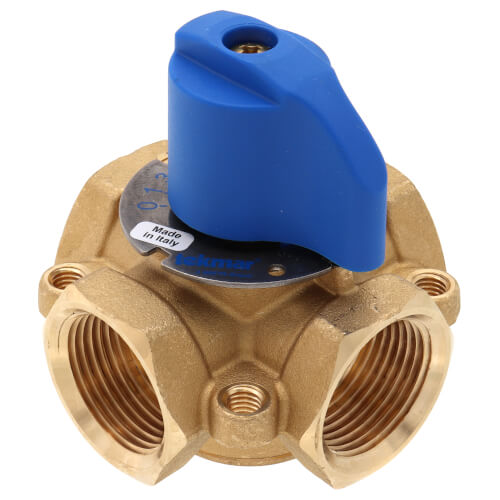 The Tekmar Controls 721 is a 1 inch brass 4-way mixing valve designed for hydronic heating systems. This valve mixes supply water from a heat source with return water ensuring optimal system performance. It is suitable for both closed loop and open loop systems and features standard female NPT threads.