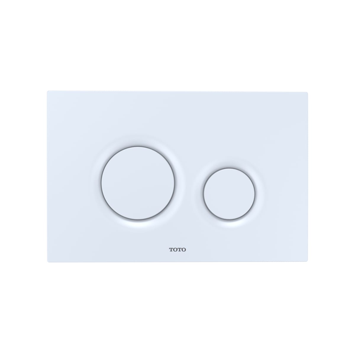 The TOTO Dual Flush Round Push Button Plate, model YT930#WH, is designed for use with the DuoFit in-wall tank systems. This push plate allows users to control the water volume during flushing with ease. The rectangular design fits seamlessly into modern bathroom settings, providing both functionality and aesthetics.