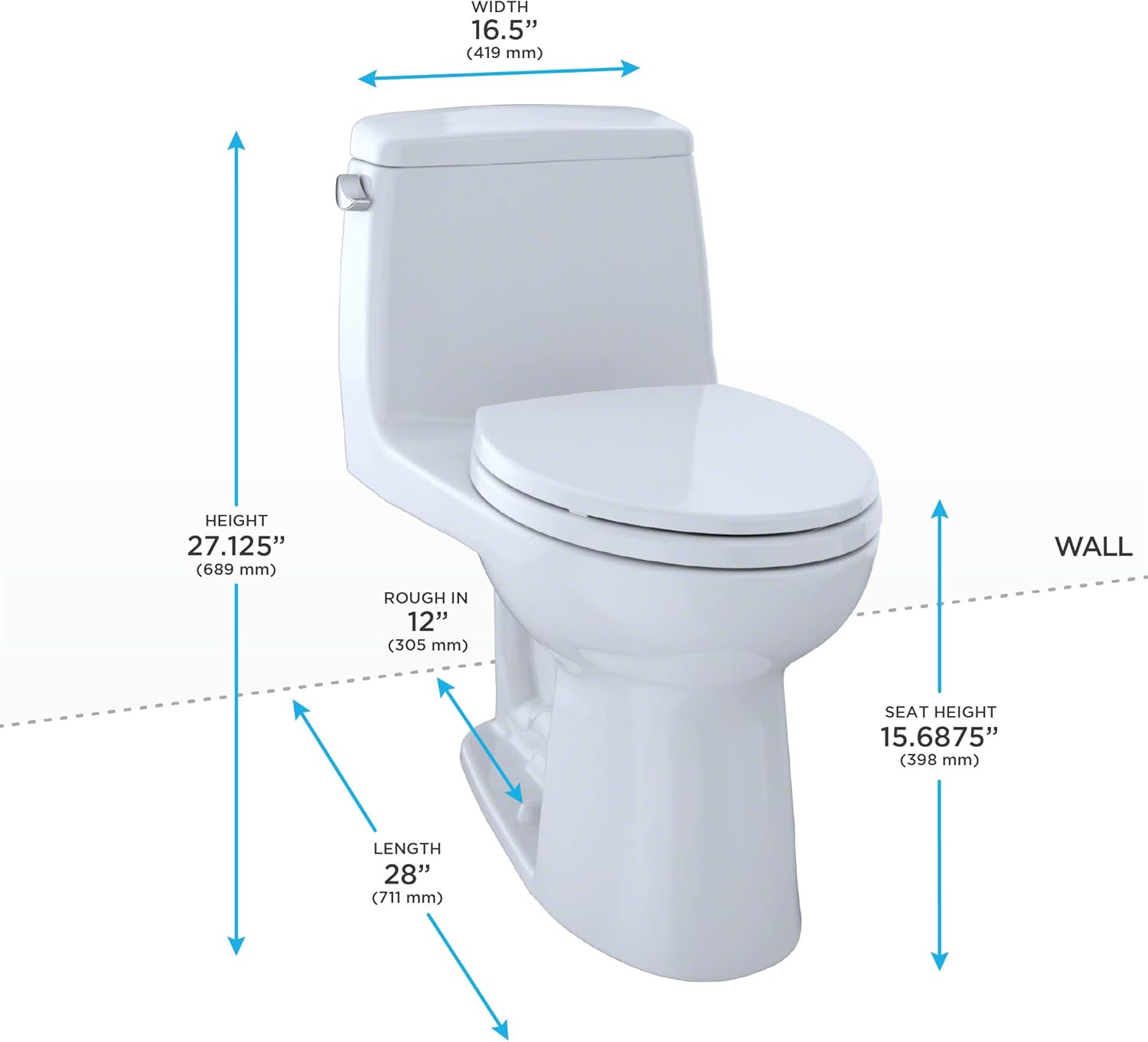 TOTO MS854114SG#01 Ultramax Elongated One Piece Toilet with Sanagloss Cotton White