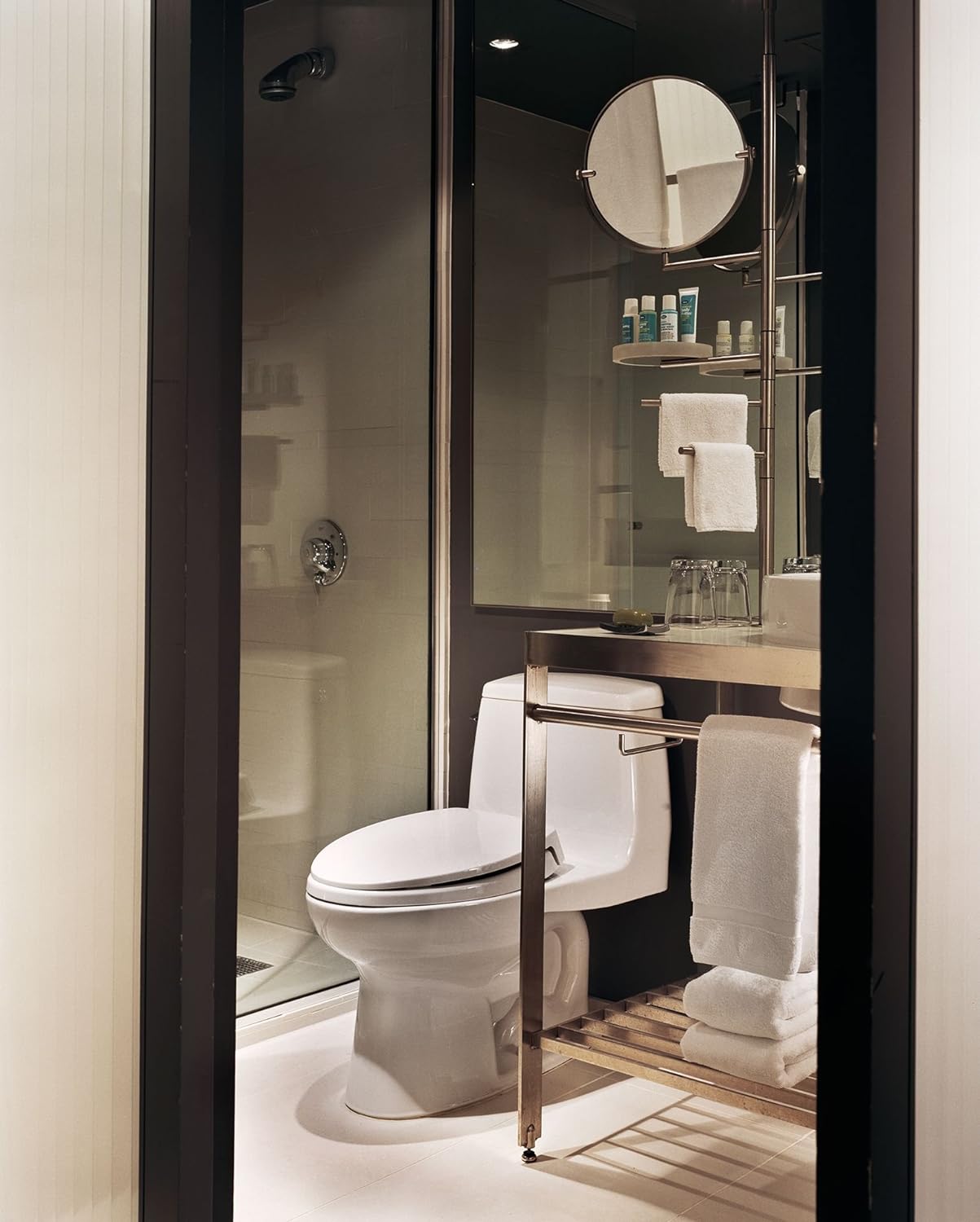 • Clean, modern one-piece design, easier to maintain versus a two-piece toilet