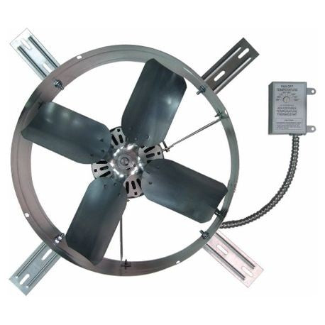 TPI Corporation GV4052BG Gable Mount Ventilator operates on 120 VAC with a single speed motor. This ventilator is partly assembled and includes a thermostat that adjusts automatically between sixty to one hundred twenty degrees Fahrenheit. It features a fourteen-inch blade diameter and comes with four mounting tabs that are spaced on sixteen-inch centers.